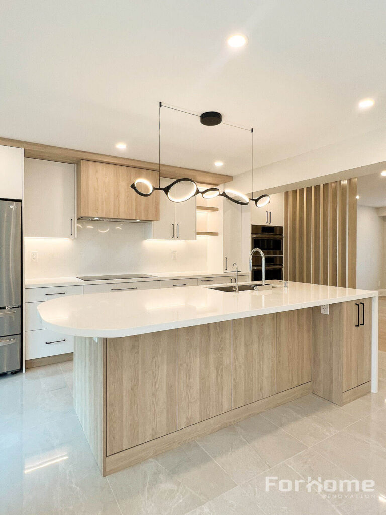 Project Details Location Scarborough Year 2023 There would be much less hustle for you to keep the tidiness when tiles are allocated with the wood flooring in the kitchen. Mixing the log style with modern concepts hands over a satisfying look with accessible methods—-these handleless cabinets complete the flat and contemporary style.
