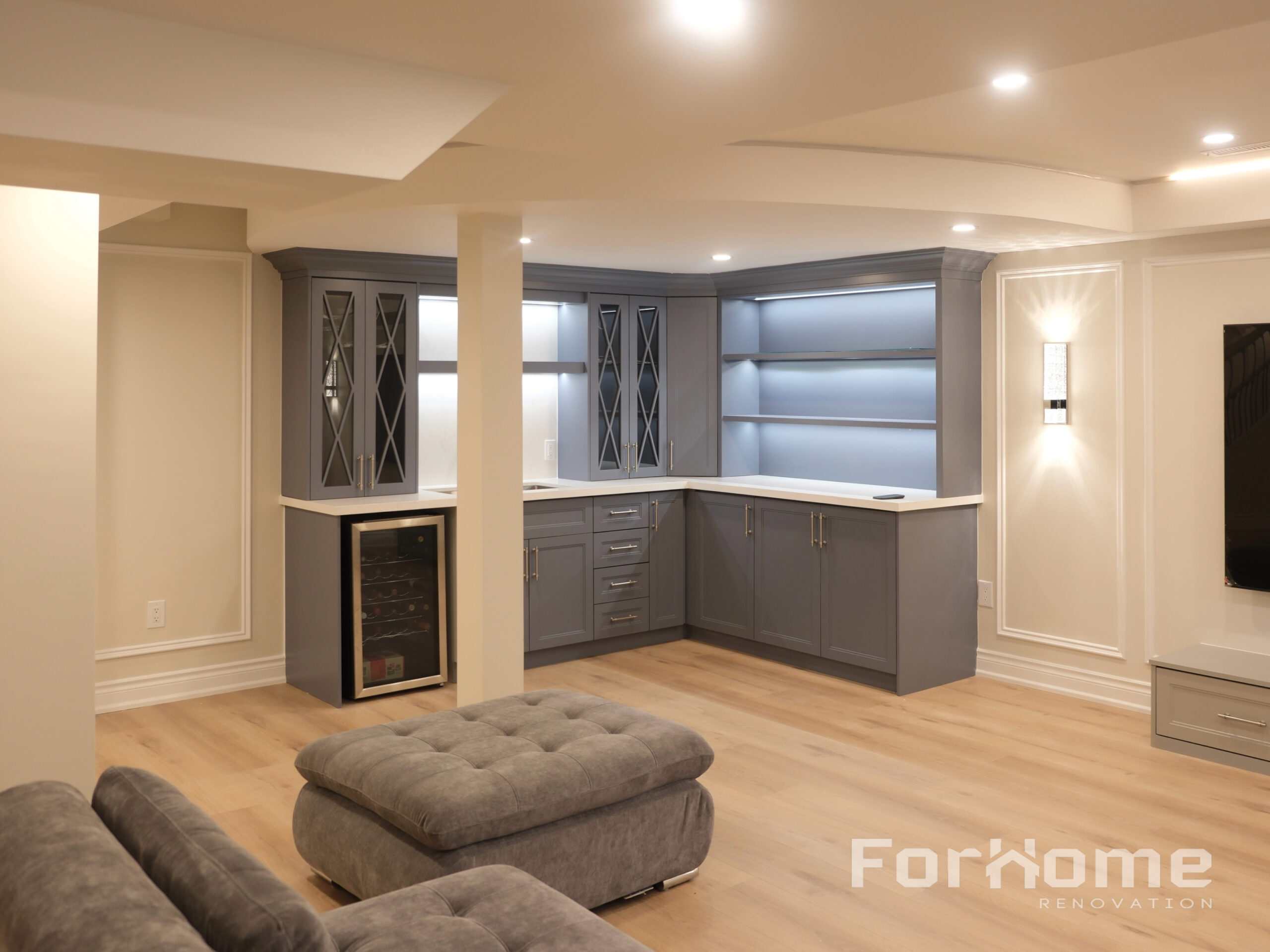 This basement renovation project in Markham, Ontario was completed by Forhome Renovation, a professional renovation contractor serving homeowners across Markham, Toronto, Richmond Hill, and the Greater Toronto Area (GTA).